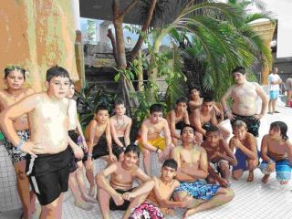 plantschten und schwammen ausgiebig. Da uns das Schwimmen ordentlich Hunger bereitete, lud uns Frau Becker danach